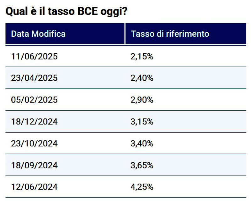 Nel giugno 2025 la BCE ha nuovamente tagliato i tassi di interesse di 25 punti base, portando il tasso sui depositi al 2% e quello sui rifinanziamenti principali al 2,15% (fonte Il Sole 24Ore). Mentre questa a una prima occhiata potrebbe sembrare una buona notizia, la realtà è più complessa.